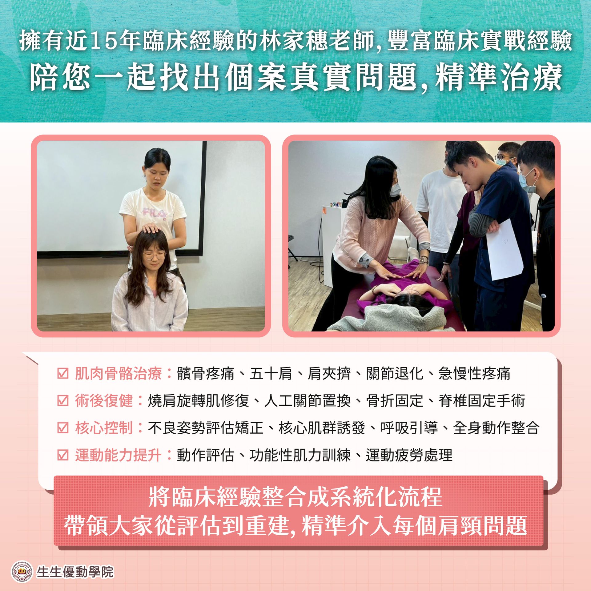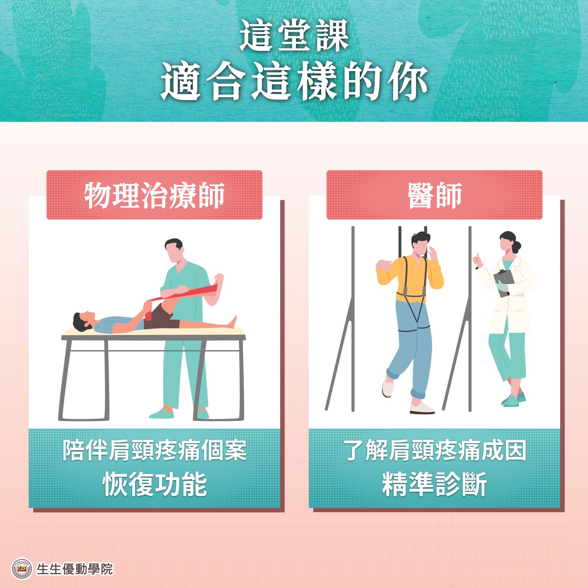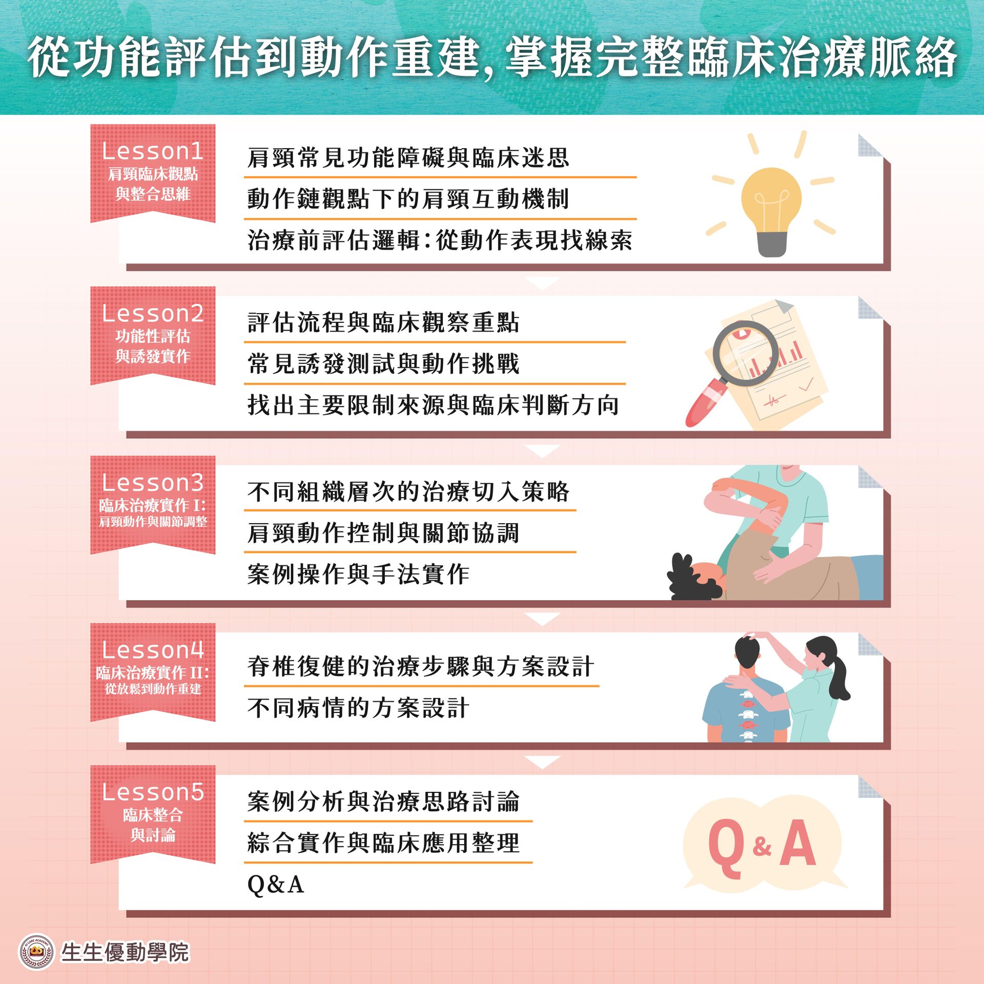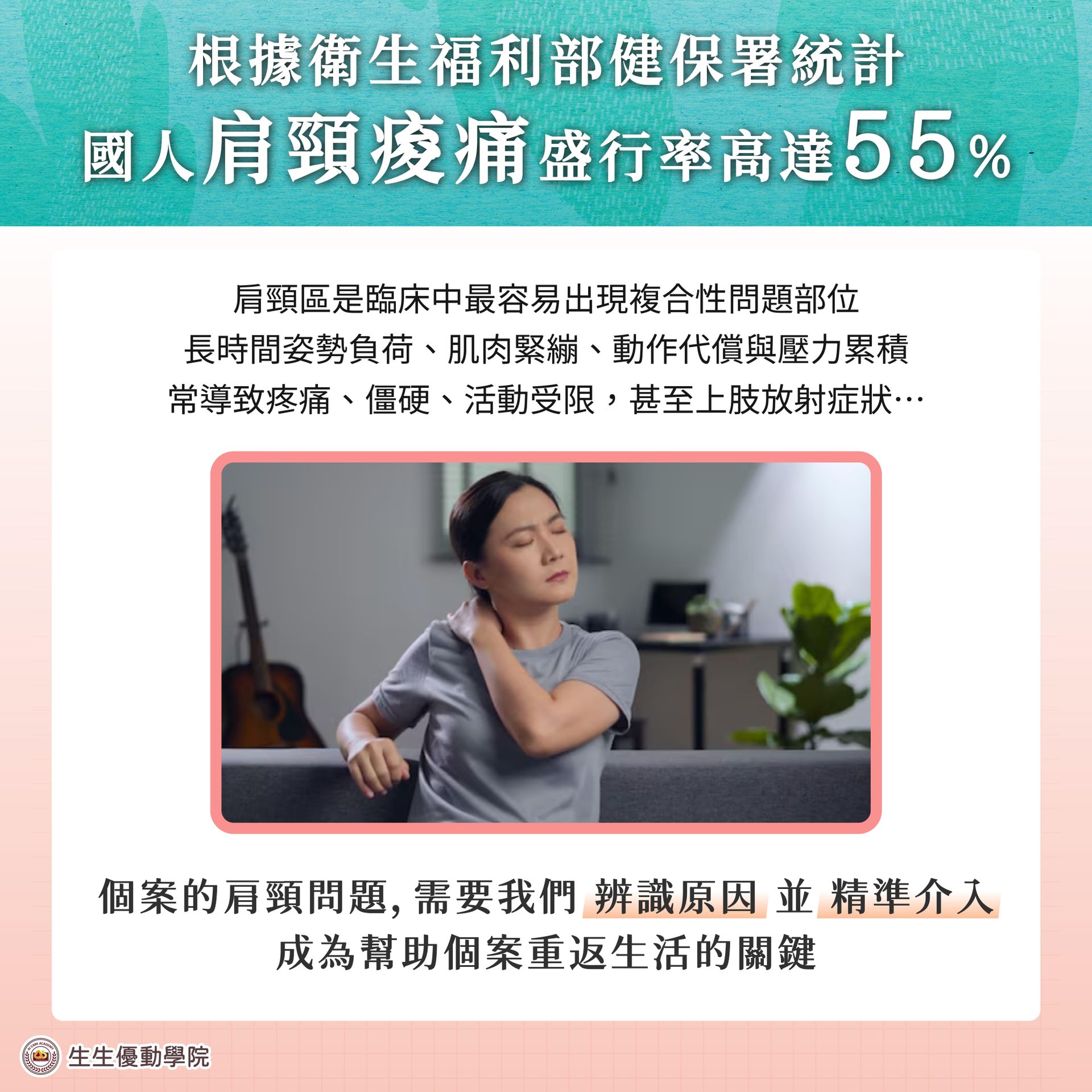 肩頸臨床觀點與整合思維:肩頸常見功能障礙與臨床迷思、動作鏈觀點下的肩頸互動機制、治療前評估邏輯:從動作表現找線索