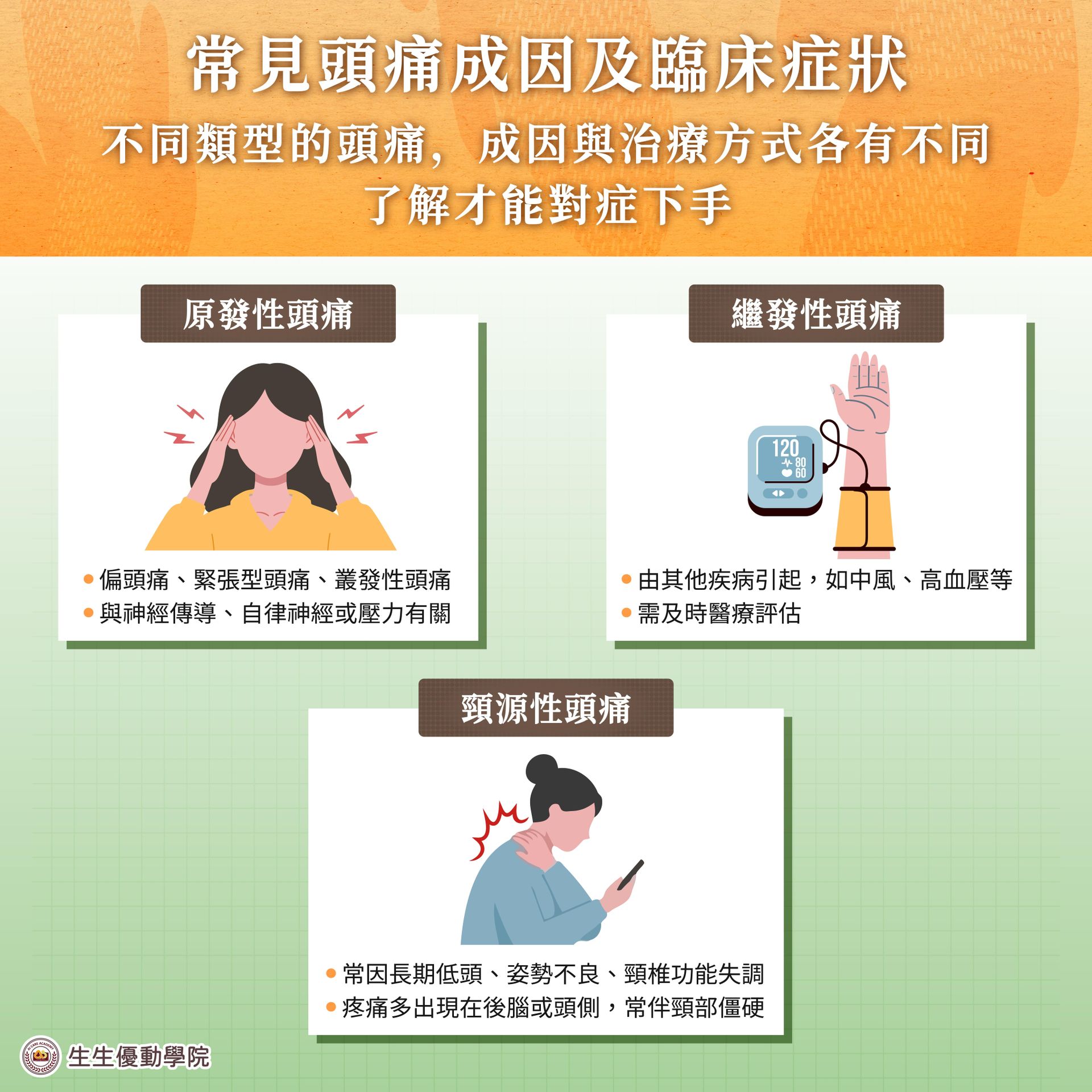 頭痛的臨床分類與鑑別診斷:常見頭痛類型的臨床特徵與病理機轉、結構性/神經性/自律神經相關頭痛的區辨